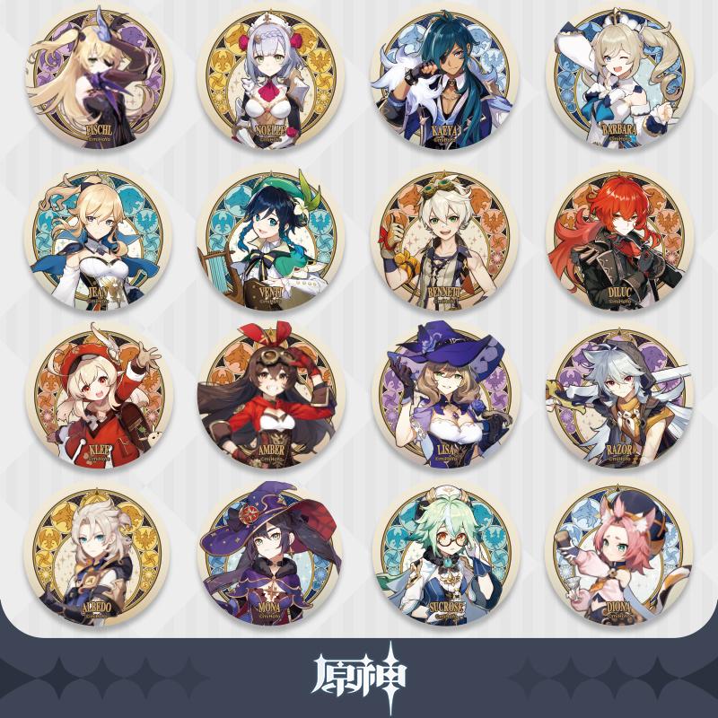 ファデュイキャラクター勢ぞろいの缶バッジ